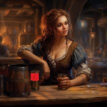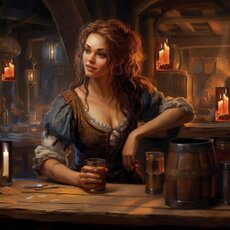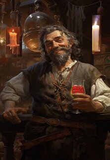 Oste gioviale e soddisfattoOSTE: Salve mercenario, io stimo molto chi, come te, si guadagna la pagnotta battendosi sia che si tratti di una grande pugna o di una piccola pugna. Hai bisogno di qualcosa? Cibo? Vino? O altro?... Vuoi saper chi abita vicino al pozzo in fondo alla via?